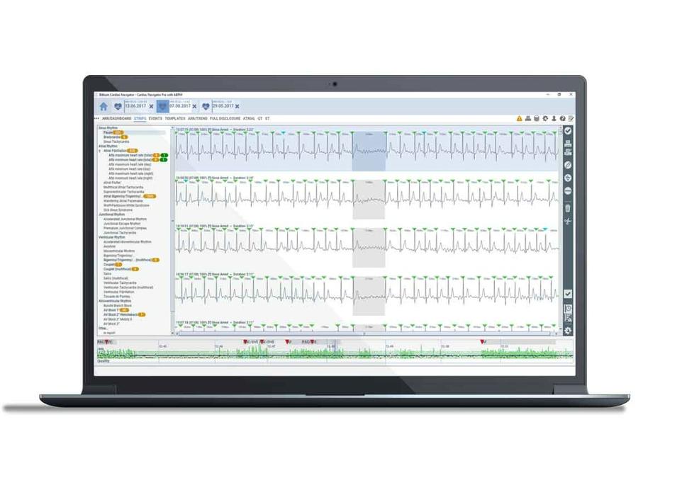Програмне забезпечення Bittium Cardiac Navigator™ — це гнучке та універсальне рішення для проведення клінічного холтерівського аналізу та моніторингу ЕКГ. Його зручне та інформативне представлення даних і інтуїтивно зрозумілі інструменти аналізу роблять програмне забезпечення ефективним і простим у використанні під час аналізу записів ЕКГ для лікаря. І медичний персонал вивчає та розуміє роботу Електрокардіографа лише за кілька днів.