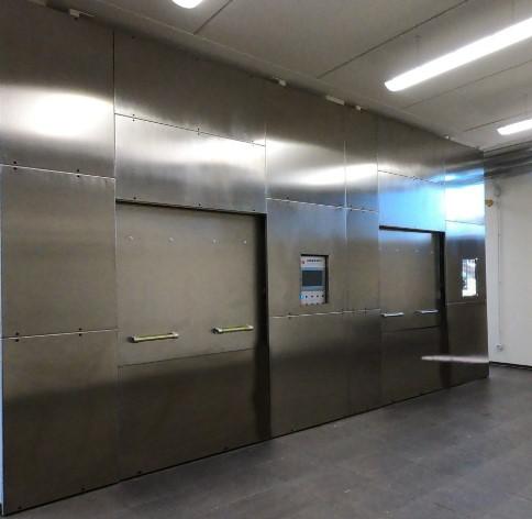 Зовнішня оболонка крематорію повністю виготовлена з листової вуглецевої сталі та товстих електрозварювальних металевих профілів, належним чином розташованих для забезпечення жорсткості конструкції, щоб утримувати і витримувати вогнетривке та ізоляційне покриття, а також вагу димоходу.