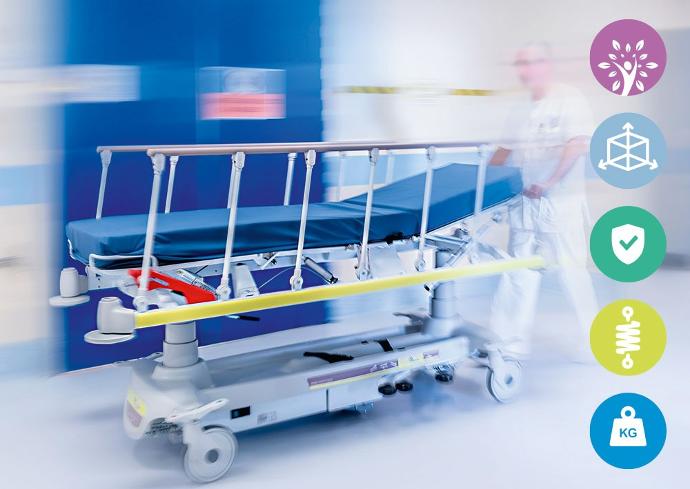 Лікарняна каталка Thunder Flash — це поєднання електроніки, механіки та екологічно чистих матеріалів, що дає можливість створити продукт, який є ергономічним, простим у використанні та дуже безпечним за рахунок датчиків безпеки та елементів керування, призначених для запобігання випадковим маневрам під час виклику пацієнта.